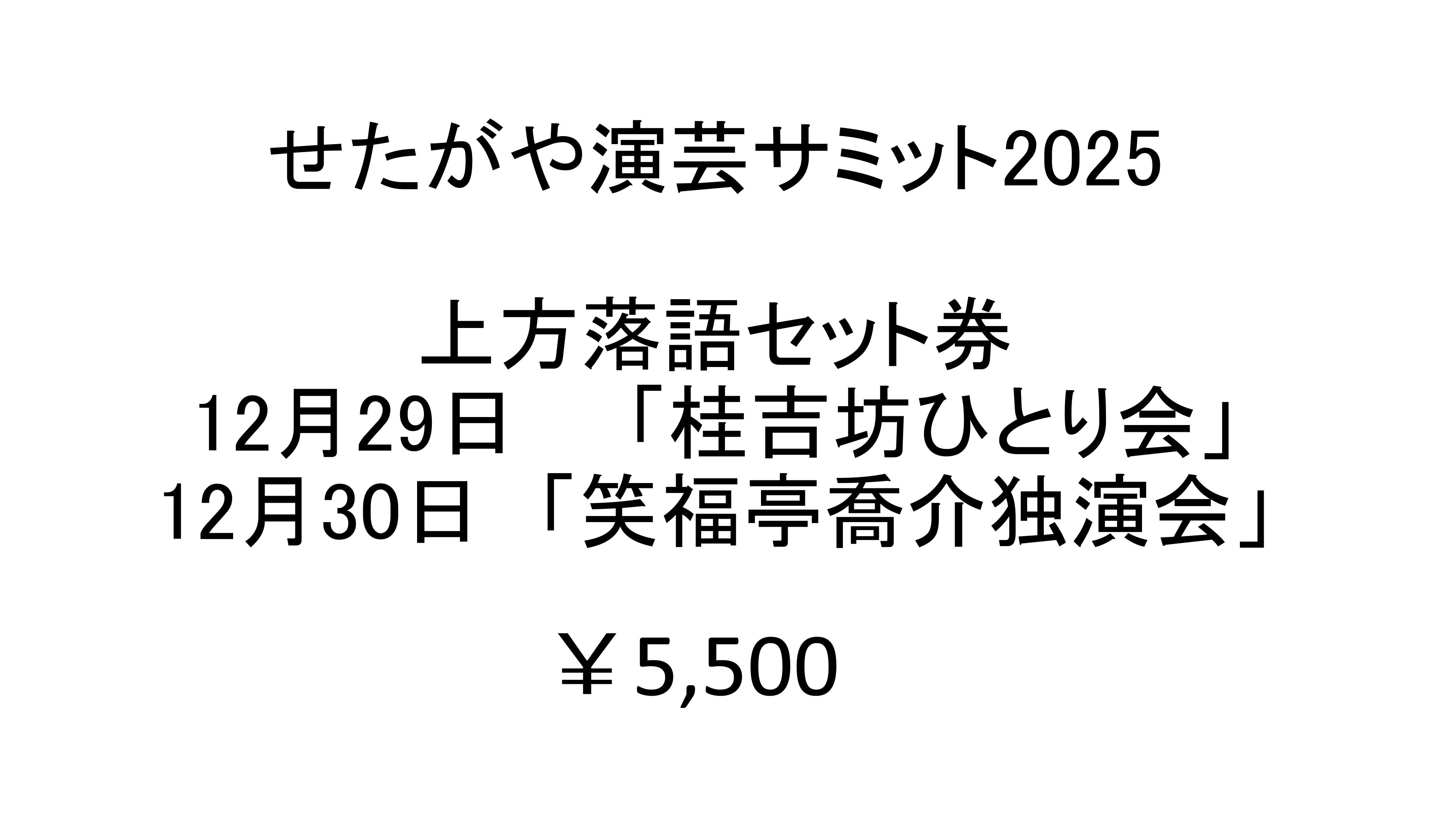12月29日と30日の「上方落語」公演どちらもご観覧いただけるチケットです。